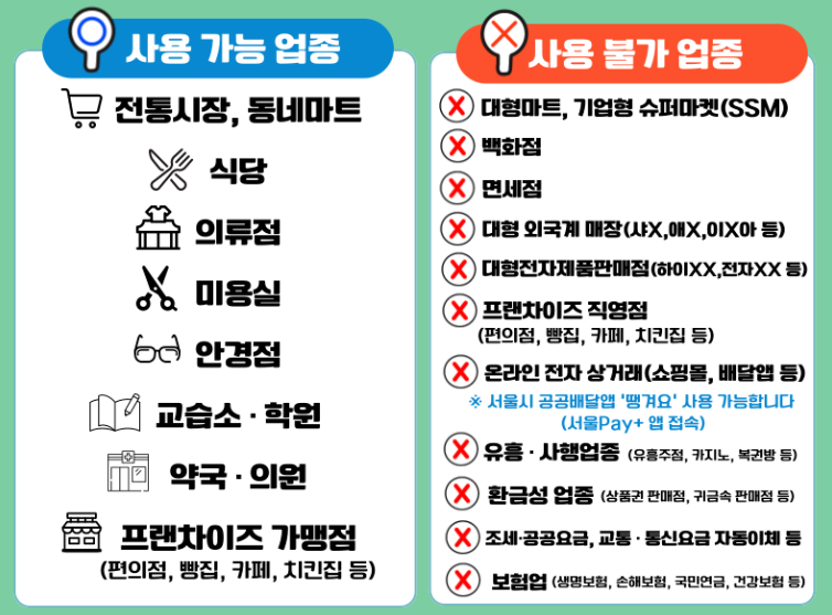 - 사용가능 여부는 매장 입구 [서울사랑상품권 가맹점] 스티커로 확인