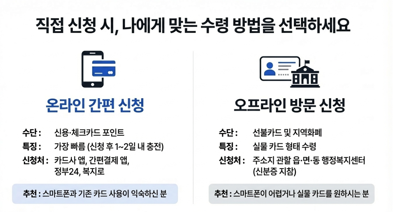 - 수령 수단 선택 가이드: 신용카드 포인트 vs 실물 선불카드