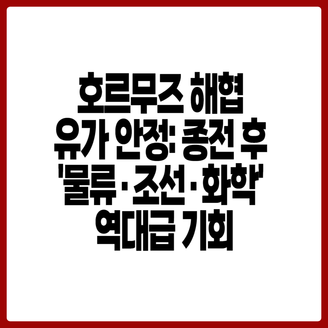 호르무즈 개방은 단순한 항로 복구가 아닙니다. 이는 조 단위의 이란 가스 플랜트 복구 및 중동 스마트시티 건설 등 거대 재건 사업의 신호탄입니다. 기초 체력을 회복한 물류·조선·화학 기업들과 함께 인프라 공급 밸류체인에 있는 핵심 기업들을 주목해야 합니다.