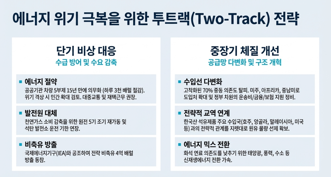 - 중장기 생존 전략: 중동 의존도 70% 탈피와 에너지 믹스