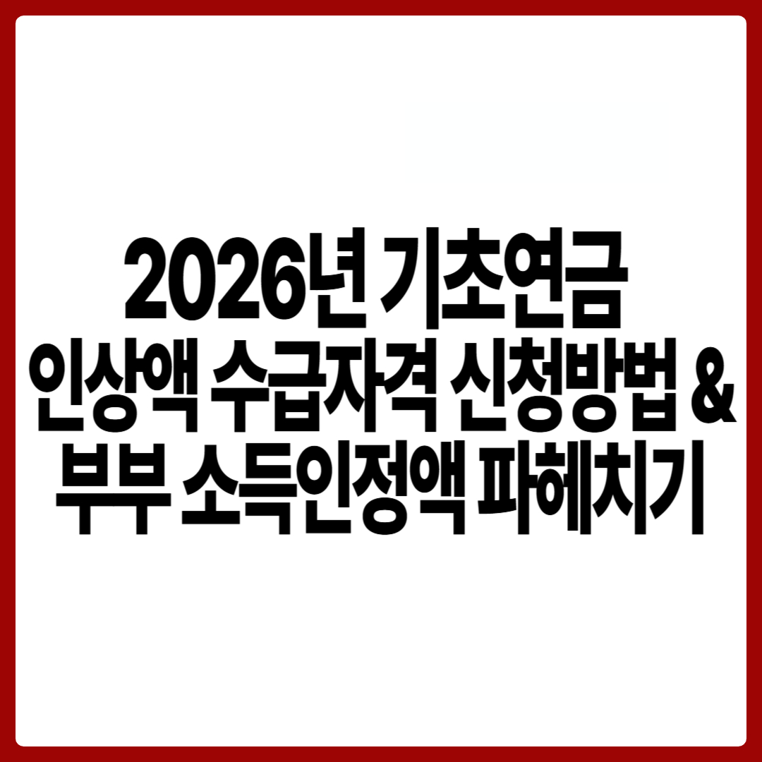 이 글에서는 2026년 기초연금의 예상 인상률, 기초연금 수급자격, 그리고 특히 중요한 부부 소득인정액 기준과 신청방법까지, 어르신과 그 가족들이 궁금해할 모든 정보를 자세히 알려드립니다.